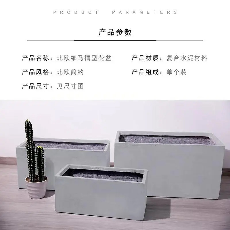 长方形水泥花盆北欧长条马槽客厅阳台户外种菜镁泥花箱大号绿植柜