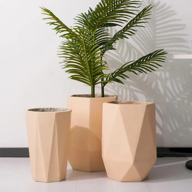 北欧简约镁泥花盆特大号加厚灰白卡其大口径客厅落地种树深高盆